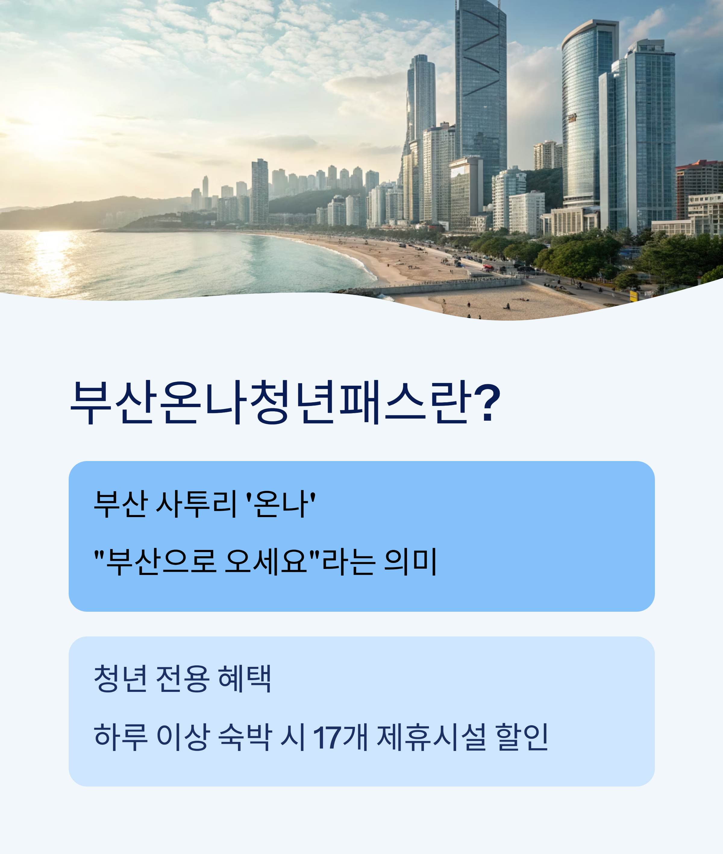 부산 여행을 계획 중인 청년이라면 절대 놓치면 안 될 소식이 있습니다. 단 하루만 숙박해도 부산의 인기 관광지, 요트 체험, 아쿠아리움, 감성 카페, 맛집까지 할인받을 수 있는 부산온나청년패스가 시작되었는데요. 예산이 소진되면 조기 마감되는 한정 혜택이라 더 특별합니다. 부산을 알뜰하게 즐길 수 있는 방법, 지금부터 확인해보세요.