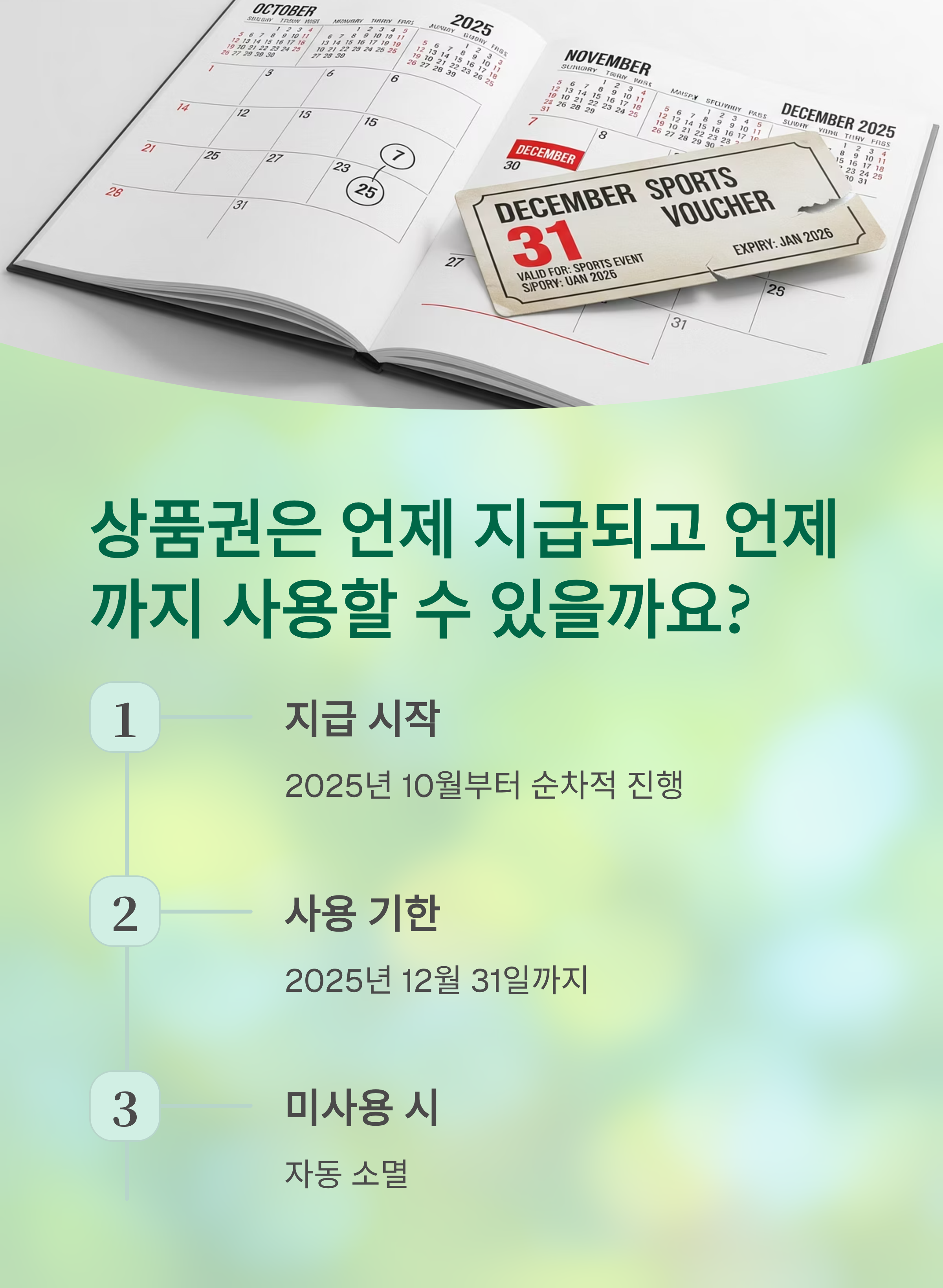 지급은 10월부터 순차적으로 시작되고, 사용기한은 12월 31일까지입니다.