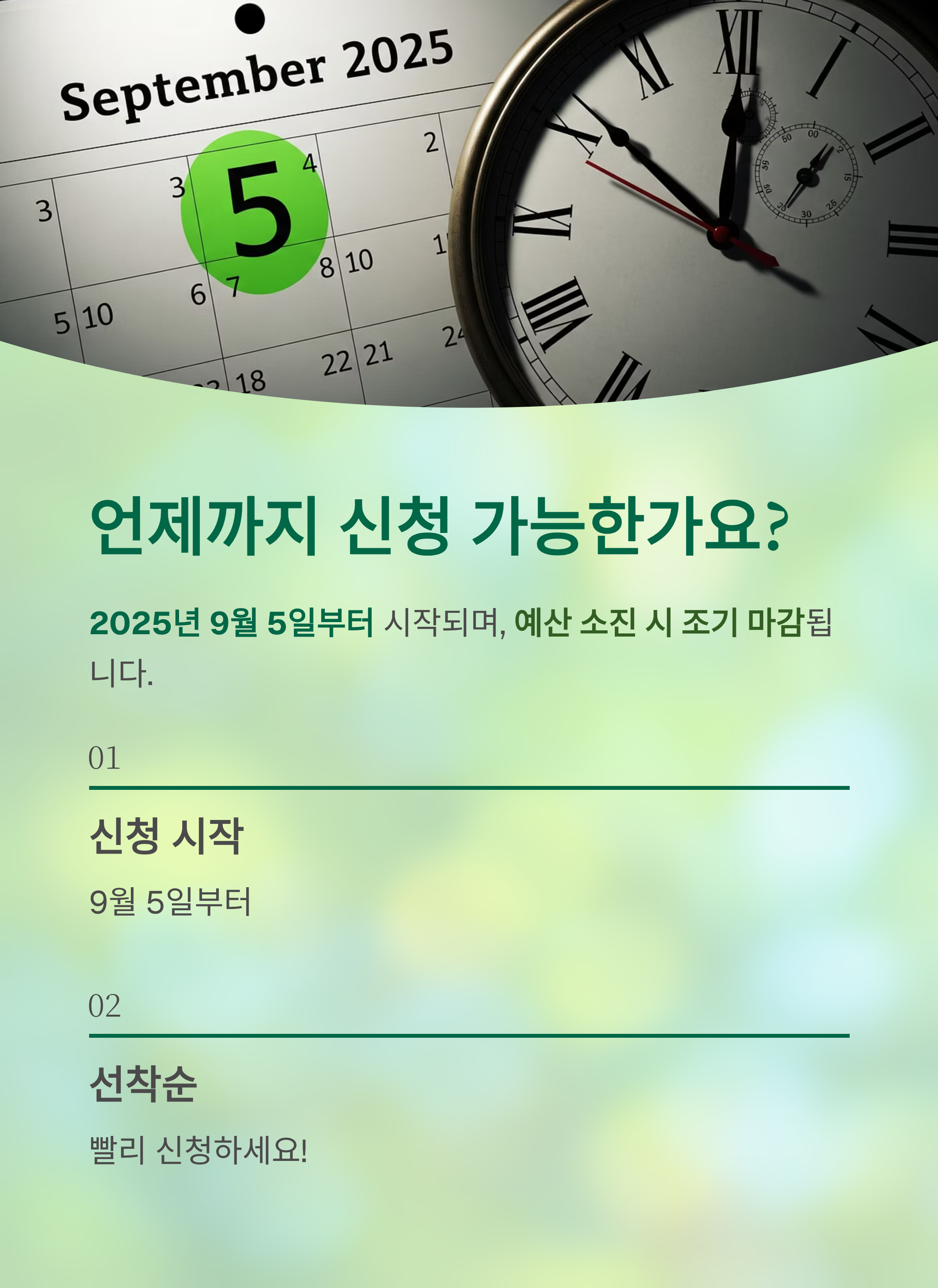 신청 기간은 2025년 9월 5일부터 시작되며, 예산 소진 시 조기 마감됩니다.
