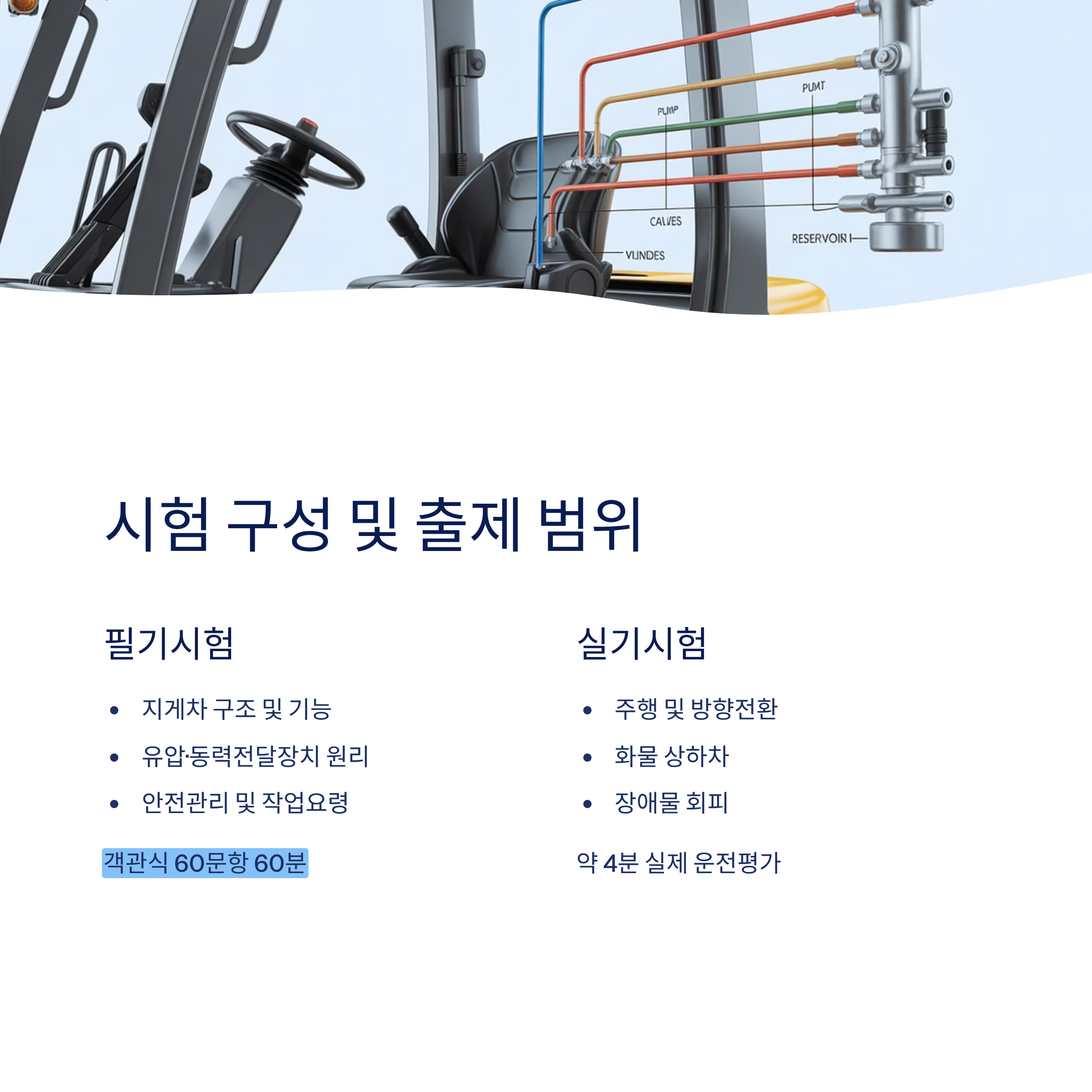 실제 지게차 조작 능력을 평가하기 때문에 충분한 연습이 필요합니다.