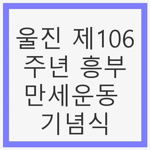 제106주년 흥부만세운동 기념식을 준비하기 위해 지역 주민들과 관련 단체들은 한 달 전부터 바쁘게 움직였습니다. 기념식 장소인 흥부만세공원은 행사에 맞춰 정비되고, 기념탑과 비석 주변은 깨끗하게 청소되었습니다. 행사에는 울진 군수 및 여러 인사들이 참석하여 이들의 희생정신을 기리는 헌화와 분향이 예정되어 있습니다. 기념식에는 다양한 프로그램이 계획되어 있으며, 지역 주민들은 자발적으로 참여하여 그날의 의미를 되새기고자 합니다.