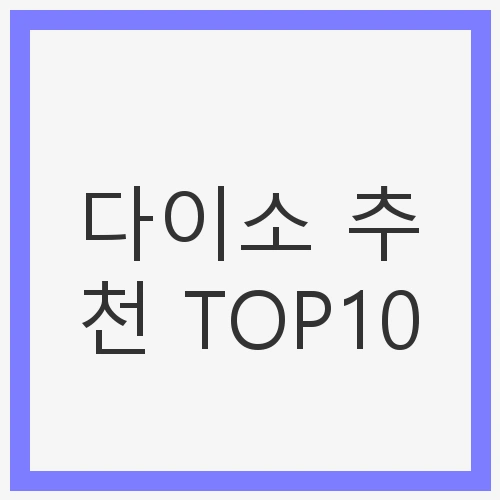 안녕하세요! 오늘은 많은 이들이 사랑하는 다이소에서 추천할 만한 아이템 TOP10을 소개해 드리려고 합니다. 요즘 다이소는 단순한 생활용품을 넘어 인테리어 소품까지 다양한 제품들이 가득 차 있어 언제 가도 새로운 발견이 있습니다. 저 또한 다이소를 방문할 때마다 "이 가격에 이런 품질이?"라는 생각을 하곤 하는데요, 특히 가성비가 뛰어난 제품들이 많아서 항상 쇼핑백을 가득 채우고 돌아오는 것 같습니다. 이번 포스팅에서는 제가 실제로 사용해본 아이템들 중에서 "이건 꼭 사야 해!"라는 제품들만 모아봤습니다. 가격은 물론 실용성까지 고려하여 엄선한 다이소 추천템들을 지금부터 함께 알아보겠습니다. 여러분도 이 리스트를 참고하여 알뜰하게 쇼핑하시길 바랍니다!