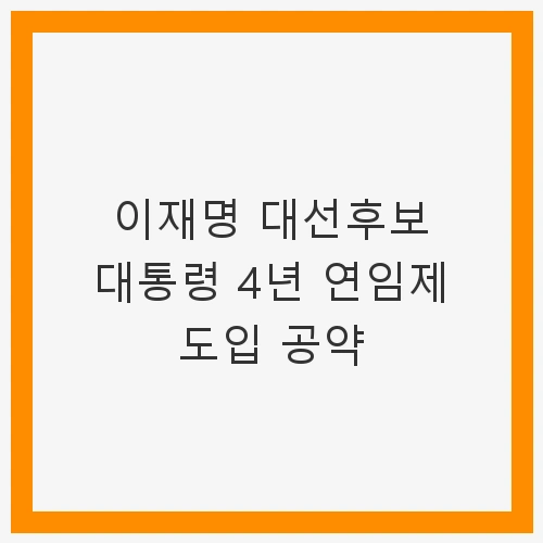 👉이재명 대선후보 대통령 4년 연임제 도입 공약 알아보기대통령 4년 연임제란?
