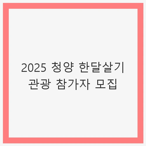 👉2025 청양 한달살기 관광 참가자 모집 바로보기